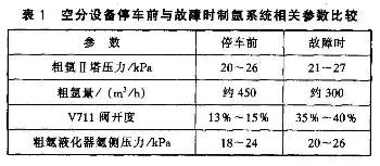 停運粗氬液化器和精氬塔的第二天,塔皮上的結(jié)霜現(xiàn)象消除,據(jù)此進一步確認為V711閥后管道泄漏。