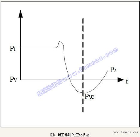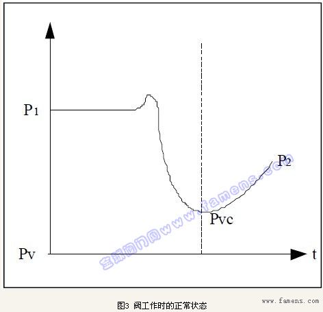 圖3用來表示流體介質(zhì)流經(jīng)閥體內(nèi)部的壓力變化:P1閥的入口壓力;P2閥的出口壓力;Pv閥入口溫度下的液體飽和蒸汽壓;Pvc流體縮流斷面的壓力。