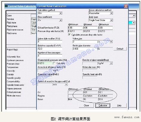 口徑過小,會(huì)使調(diào)節(jié)閥不能通過工藝對(duì)象要求的最大流量,或使能耗增加;口徑過大,不僅使投資增加,而且使調(diào)節(jié)閥經(jīng)常在小開度條件下工作,可調(diào)比減小,調(diào)節(jié)性能變壞,容易造成控制系統(tǒng)不穩(wěn)定。口徑的選擇和確定主要依據(jù)閥的流通能力CV。下面介紹以CFD18-1工況條件下,管道為4〃,使用Intools儀表軟件計(jì)算調(diào)節(jié)閥的CV值。將需要的工藝參數(shù)添加到軟件相應(yīng)的位置中,如圖1,計(jì)算結(jié)果如圖2。