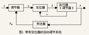 要理解閥門(mén)定位器在一個(gè)過(guò)程控制系統(tǒng)中所扮演的角色,參看圖1。圖中r為被調(diào)量的設(shè)定值;y為被調(diào)量;y為被調(diào)量的測(cè)量值;u為調(diào)節(jié)器的輸出信號(hào)(與執(zhí)行器即調(diào)節(jié)閥的開(kāi)度成一定的關(guān)系);f為定位器的輸出信號(hào);c為閥門(mén)位置信號(hào)。定位器在此系統(tǒng)中的主要作用就是將從調(diào)節(jié)器來(lái)的調(diào)節(jié)信號(hào)(4~20mA或3~15psi)與從執(zhí)行器來(lái)的閥門(mén)位置信號(hào)相比較,判斷它們是否與預(yù)期的關(guān)系相匹配,如果相匹配,則定位器將使執(zhí)行器維持在此位置,否則將使執(zhí)行器動(dòng)作直至兩信號(hào)相匹配。此外定位器的主要作用還包括改變閥的作用方式、靜態(tài)特性、實(shí)現(xiàn)分程控制等。