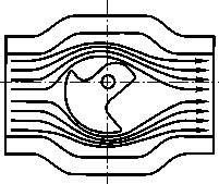| (2)角行程的閥克服了直行程閥流路復(fù)雜和上下導(dǎo)向易堵卡的問(wèn)題,介質(zhì)流經(jīng)角行程類(lèi) 的閥,似乎是直接流進(jìn)流出,最典型的就為“O”型球閥,就象直管道一樣,其防堵性能最好, (見(jiàn)圖三);其次就是全功能超輕型閥、蝶閥等,它們的節(jié)流形式見(jiàn)圖四、五。 | ||||||