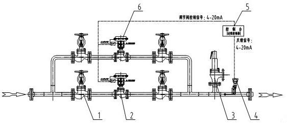 由于工廠生產(chǎn)工藝的需要,蒸汽是必不可少的工藝介質(zhì),需要從電廠輸入蒸汽,因電廠到工廠的距離較遠存在壓力波動較大的情況以及工廠在實際使用的蒸汽流量波動范圍較大,因此在進入工廠的蒸汽主管道壓力進行減壓穩(wěn)壓,特別是在蒸汽用量很小時,即閥門的開度很小,閥門在小開度情況下不是很穩(wěn)定,容易出現(xiàn)閥門震蕩。解決方案:采用兩個氣動控制閥或者兩個電動控制閥并聯(lián)的方式來應(yīng)用。