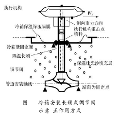 c)從調(diào)節(jié)閥的結(jié)構(gòu)形式的角度分析:使用在不同溫度場合的調(diào)節(jié)閥,大都配制的是帶有散熱器的或是帶有長頸溫度差隔離(深冷的距離尺寸更長,在安裝上這些調(diào)節(jié)閥一般都有兩個(gè)支撐點(diǎn),一個(gè)在管道或設(shè)備上,另一個(gè)在保冷箱壁上)的產(chǎn)品,它們比普通調(diào)節(jié)閥至少多了一段散熱或隔離距離,閥桿填料所處的位置不是直接的工藝溫度,溫度條件能向環(huán)境溫度方向改善一點(diǎn),填料不至于過早老化,使用周期延長。其共同特點(diǎn)是閥體連接執(zhí)行機(jī)構(gòu)的引出端距離很長,非垂直安裝力臂很長,執(zhí)行機(jī)構(gòu)重力產(chǎn)生的力矩很大。因此,這類調(diào)節(jié)閥垂直安裝基本無問題,但側(cè)面、水平安裝大都出現(xiàn)過泄露、內(nèi)件損壞、調(diào)節(jié)動(dòng)作不靈敏等情況,此類問題現(xiàn)場不采取支撐措施很難解決,檢修中填料壓得不緊很容易出現(xiàn)泄漏故障,壓得過緊則調(diào)節(jié)閥動(dòng)作不靈敏,甚至?xí)霈F(xiàn)反推力導(dǎo)致不動(dòng)作的現(xiàn)象,每次加、換填料工作,就顯得難度很大,不容易掌握。