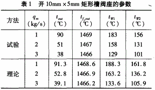 通過(guò)試驗(yàn)研究和理論分析得知:最大誤差不超過(guò)5%,理論值與實(shí)驗(yàn)值基本吻合。為研究方便,可進(jìn)一步采用對(duì)流換熱理論分析不同槽道尺寸及不同冷卻水流量下閥座的換熱特性。